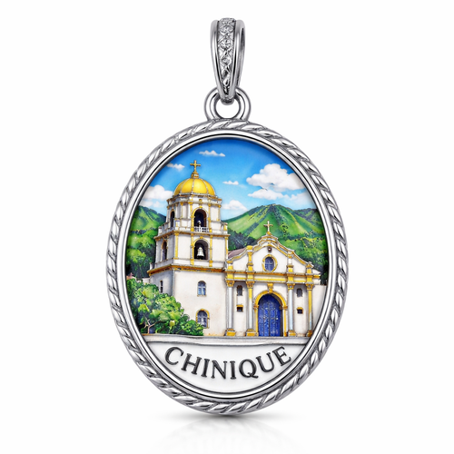 Oval pendant charm silver 925 with Chinique chorch with enamel finish
