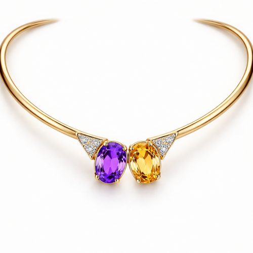 Gold choker with two middle size oval stones at the middle from end . One violet one yellow. As attachment from the c ch...