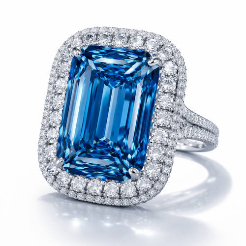 A ring with a 50 carat Oppenheimer Blue diamond