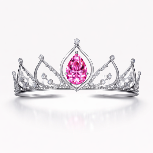 A crown with a royal vivid pink diamond and tinier diamonds scattering the crown with extra detail