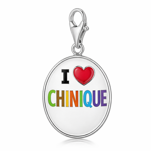 Oval pendant charm silver 925 with I love Chinique with enamel finish
