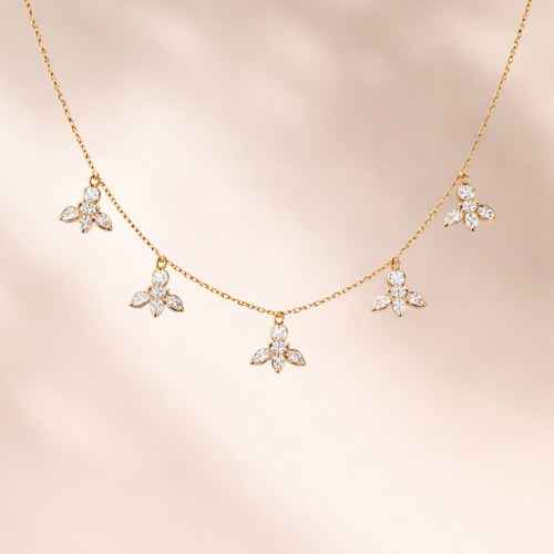 A chain with five small pendants scattered , the pendant with have a solitaire in the centre and two marquis below the s...