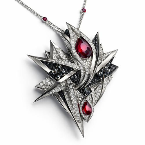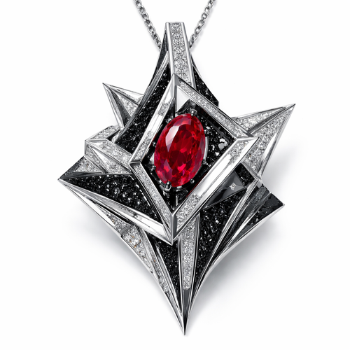 Modern pendant Geomatric shape and architecture shape and voulme of edgy style with diamonds and black diamonds and rub...
