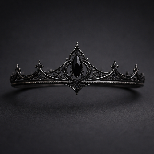 A fingernail sized crown with lots of diamonds on it with silver architecture and intricate designs on someone’s thumb