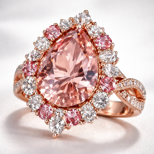 The engagement ring features a 5-carat pink diamond as the center stone and six 0.6-carat standard diamonds as side ston...