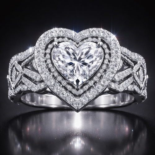 Modern Geometric ring of heart of architecture shape and edges of bold style with white and black diamond and stones o...