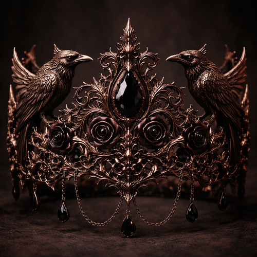A beautiful gothic crown with extreme dark rose gold carvings of crows and more