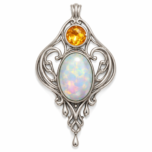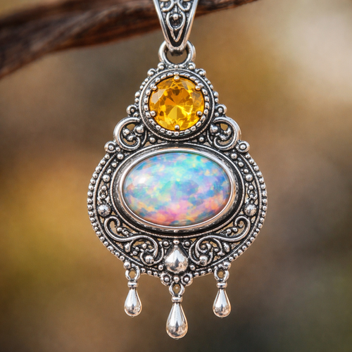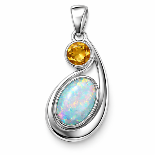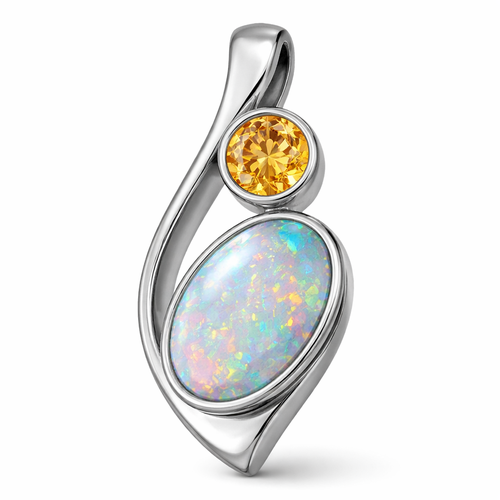 Round citrine and oval opal bezel set in a silver pendant