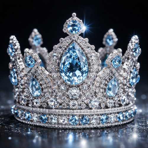 A tiny crown with tons of diamonds and blue diamonds
