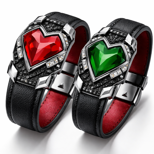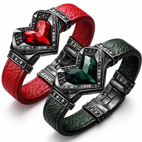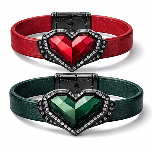 Geomatric leather bangel red and green of heart of geomatric shape and bold style and edgey for matching couples of whit...