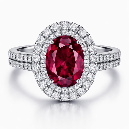 Ring with 2 cushion cut diamonds each one has a halo surround, one is a little smaller than the other, keep the same, bu...