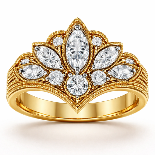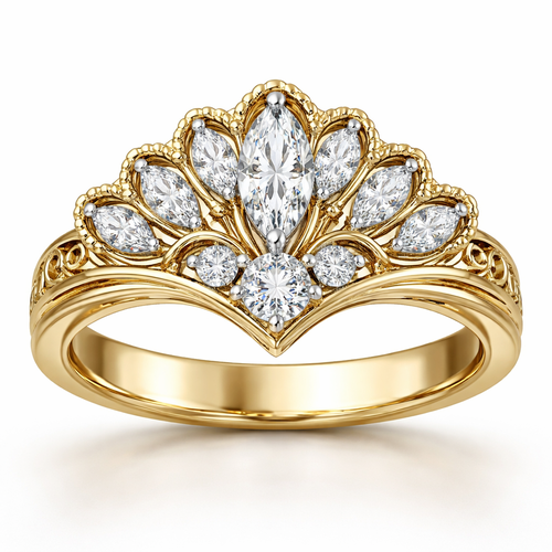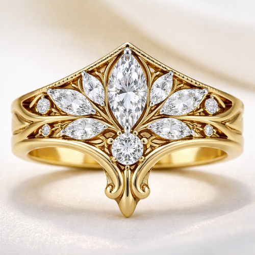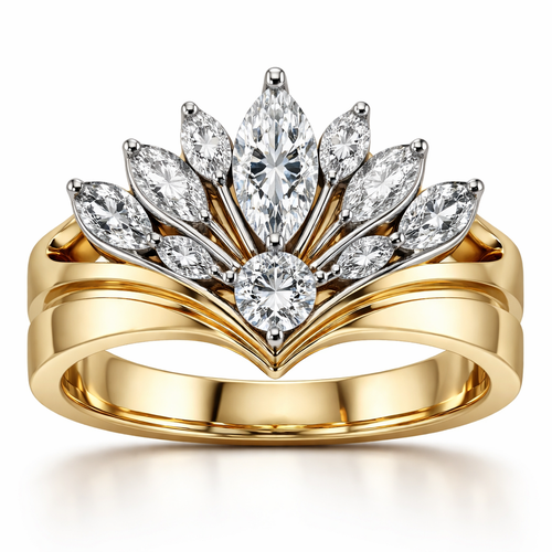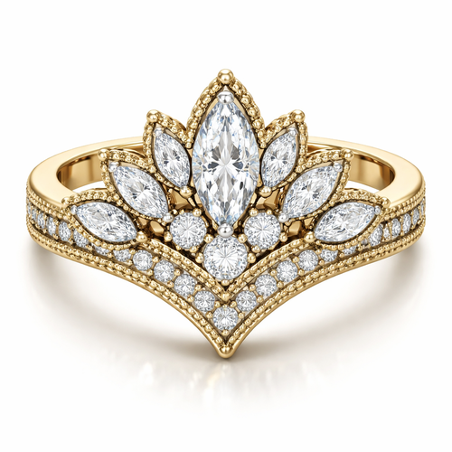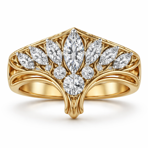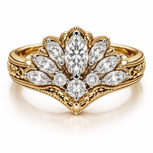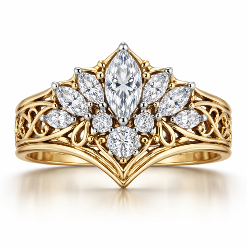 .6 karat marquise centered, with .25 round directly under it with 6 more smaller marquise diamonds and 2 .15 round diamo...