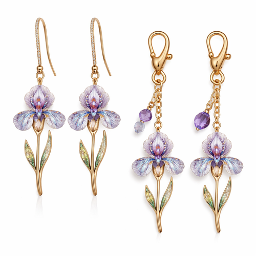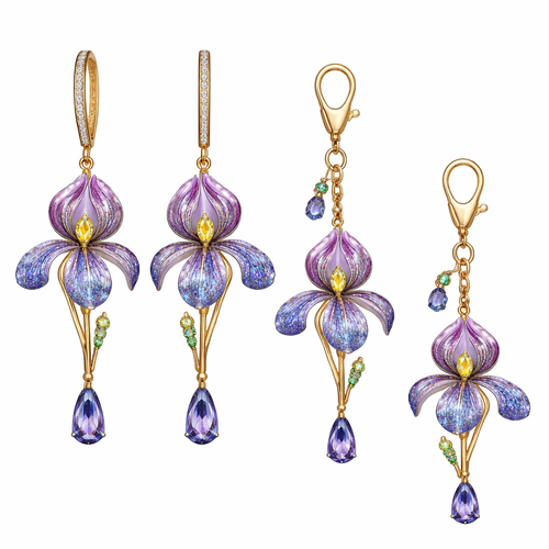 Create simple pendant earrings and bag charms with iris design with gemstones