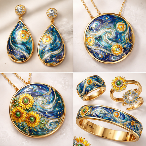 Create pendant inspired by Van Gogh paintings with stones, very little enamel
