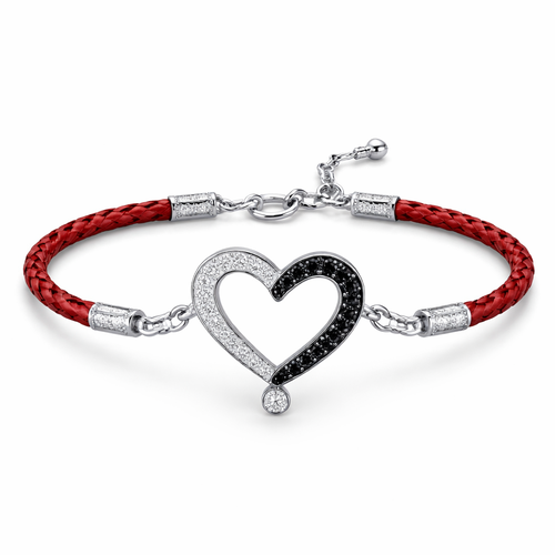 Simple modern Geomatric bangle of heart of ede style and shape white black diamonds of love shape of little bit of sto...