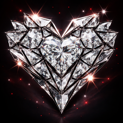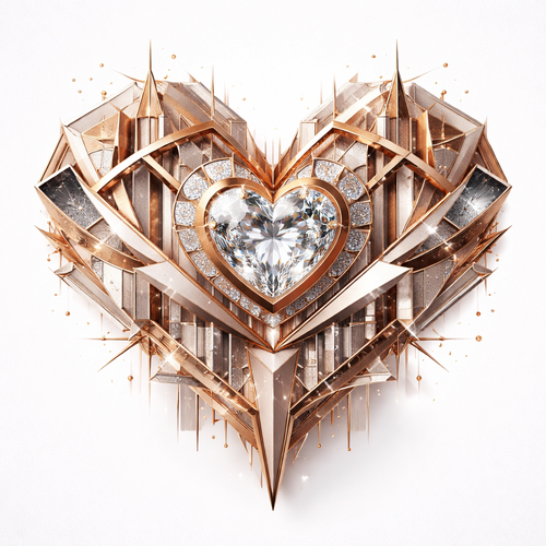 Geomatric heart love of and egdy style inspired by valantine vibe of different angles and bold shape of white diamonds