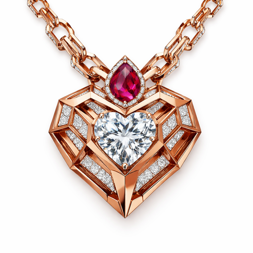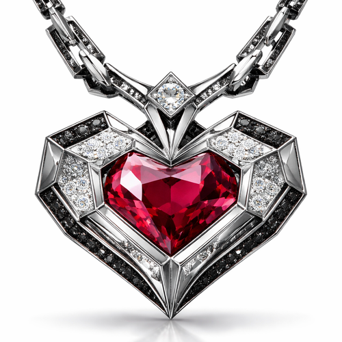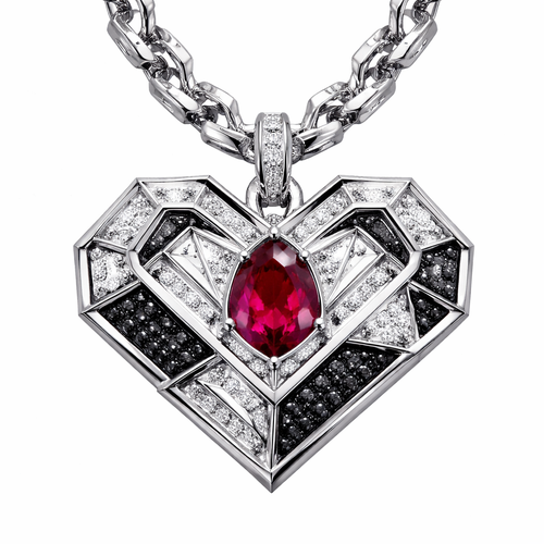 Geomatric pendant of heart of ede style and shape white black diamonds of love shape of little bit of ruby stones and ch...