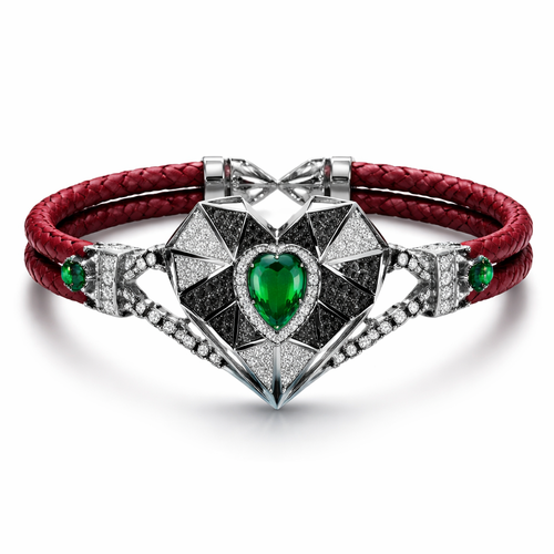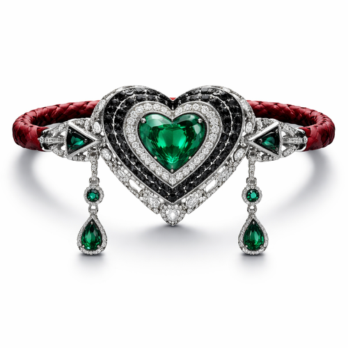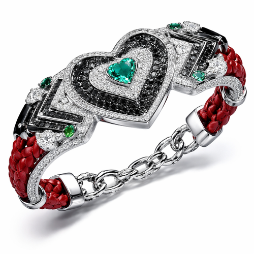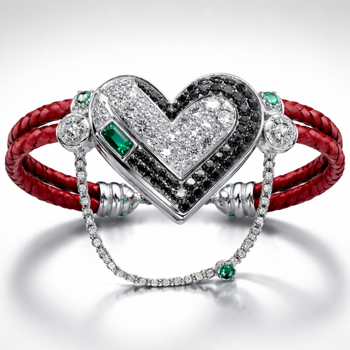 Geomatric bangle of heart of ede style and shape white black diamonds of love shape of little bit of stones and chain ...