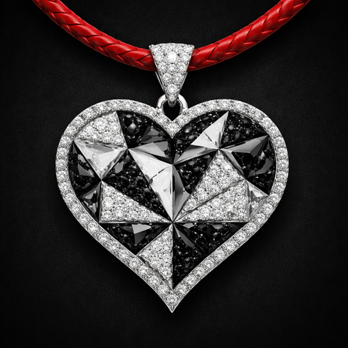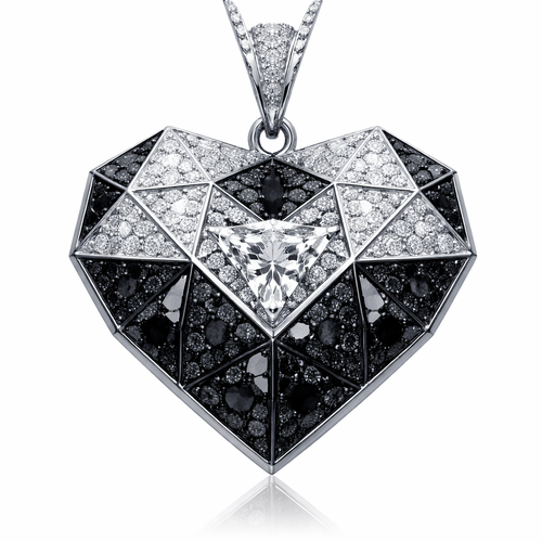 Geomatric pendant of heart of ede style and shape white black diamonds of love ahapr