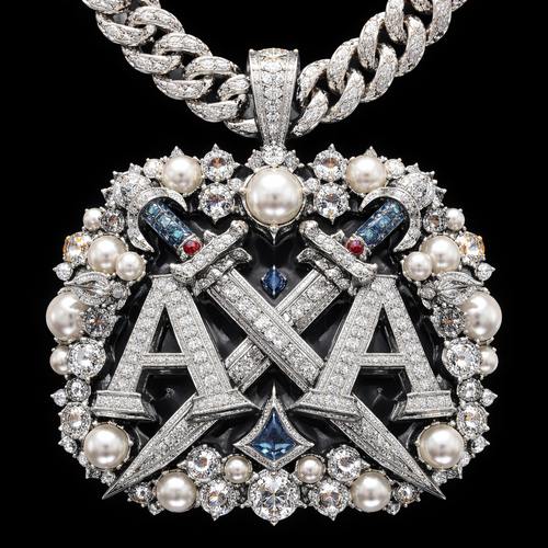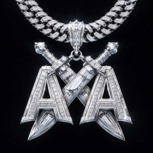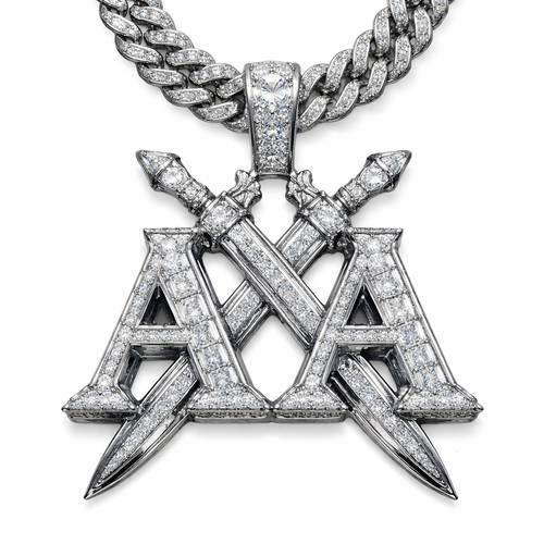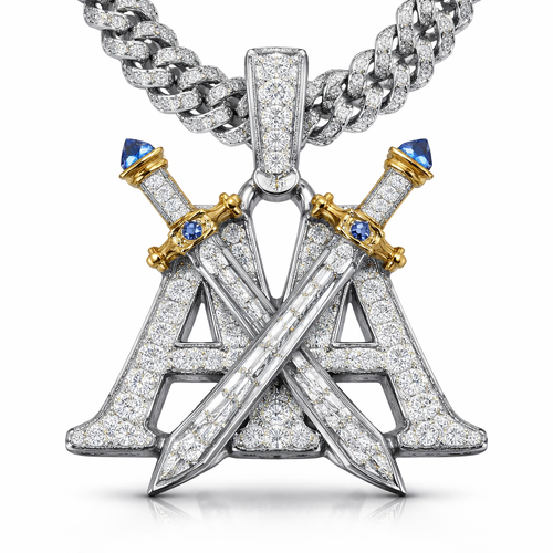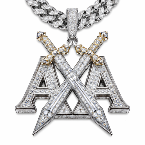 Make the A’s out of the 2Swords 3.5 inch pendant with 2 A’s with 2 crossed swords out of the 2’A VVS DIAMOND BAGUETTE DI...