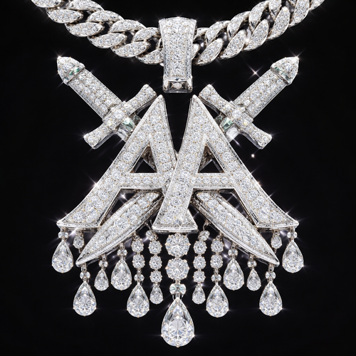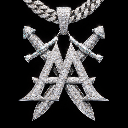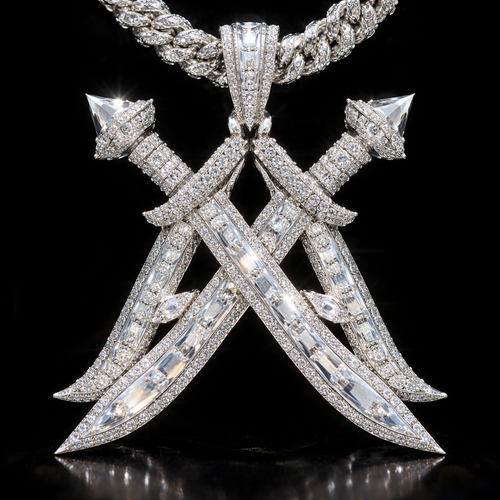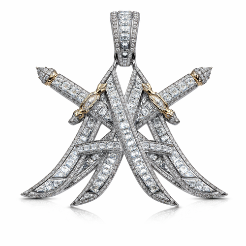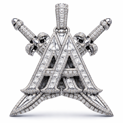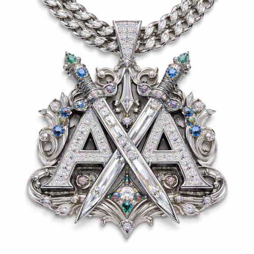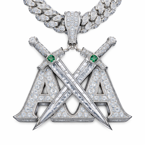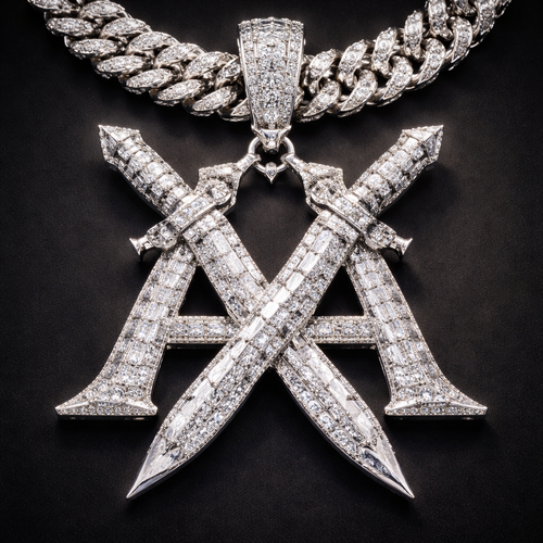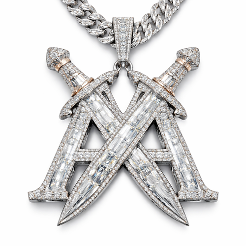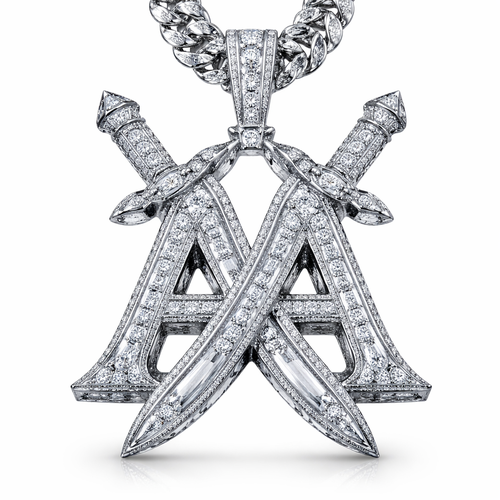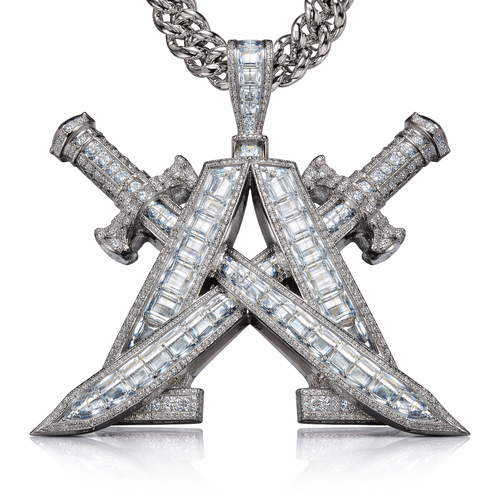 3.5 inch pendant with 2 A’s with 2 crossed swords out of the 2’A VVS DIAMOND BAGUETTE DIAMOND The Pendant: The pendant ...