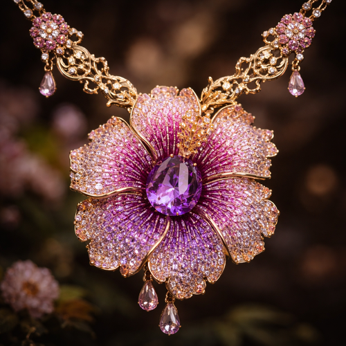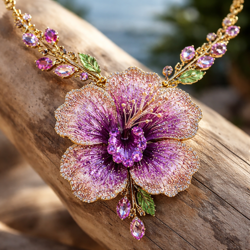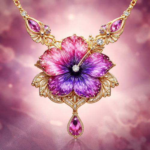make pink faded into purple sapphire hibiscus gold necklace