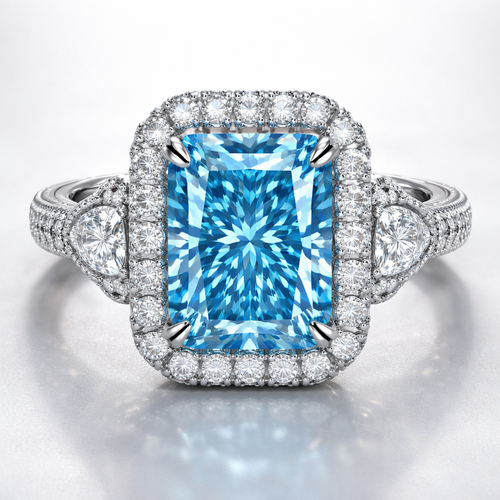 Radiant 3.6 blue diamond halo ring very fancy
