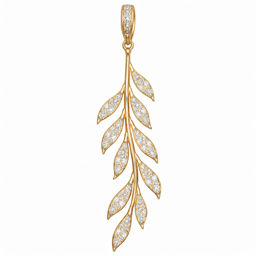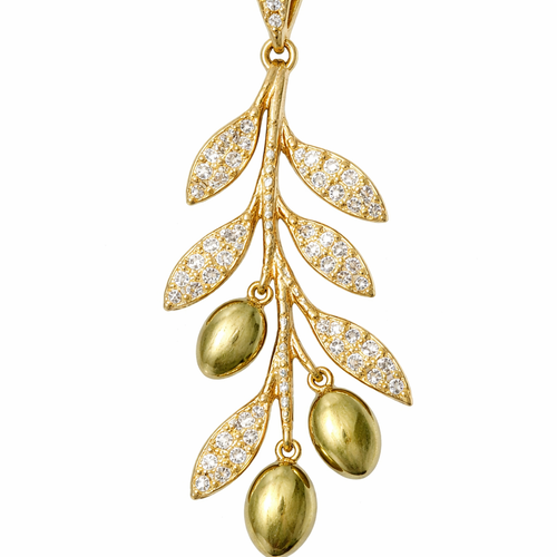 pavé diamond and gold olive branch dangle pendant vertical. No olives. Longer.
