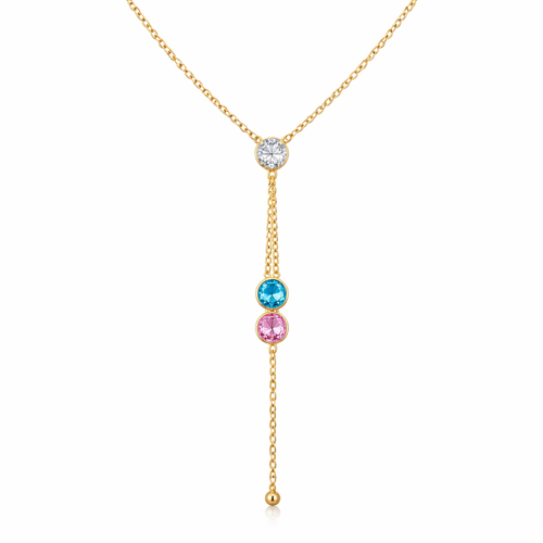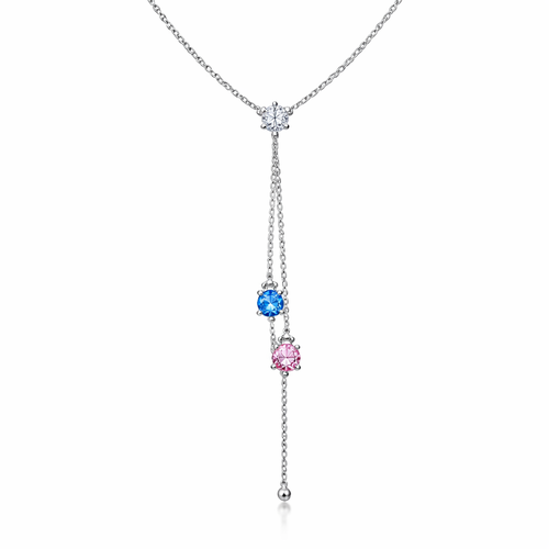 I want a necklace with a .15 ct tw and from that diamond a lariat chain with a blue diamond and a pink diamond on on top...