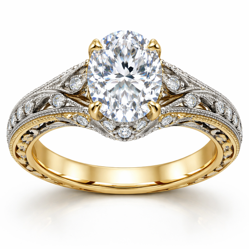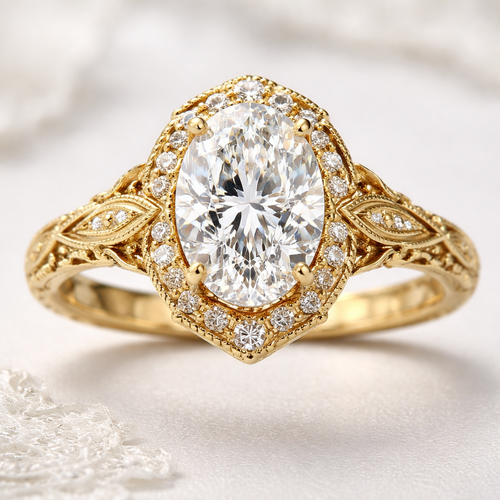 3 carat oval shape diamond on gold vintage elegant
