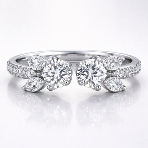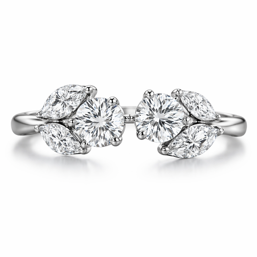 2 round 0.65ct opposite of each other with two marquise diamonds that looks like leaves on both sides