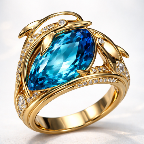 A ring with blue stone inspired by a dolphin look and gold
