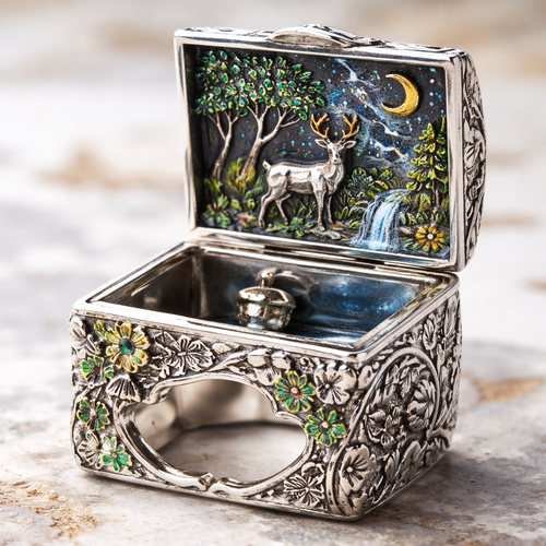 Create a silver box ring with a nature theme