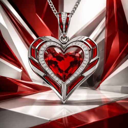 One peendant of Geomatric heart shape of architecture and bold of different angle of white and red background