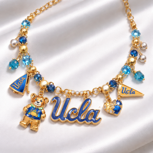 a necklace with ucla elements