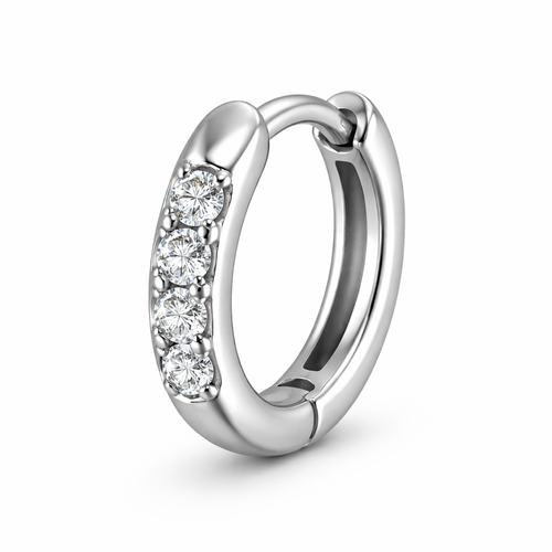 Make a white gold 10 mm in circumference Huggie pave set with just 3 small 1.5 mm round diamonds. Add one more diamond t...