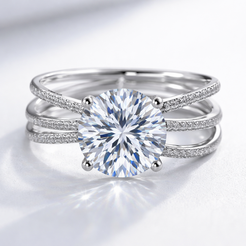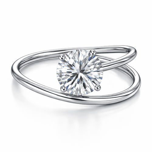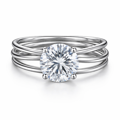Engagement ring with a round brilliant 4 carat center stone with a thin platinum wrap around band that circles around th...