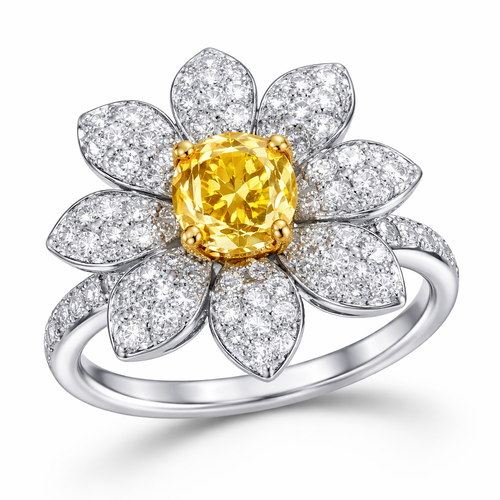 Yellow sapphire in the center of the flower, the petals of diamonds ring