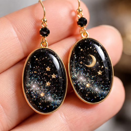 Resin earring sparkling black oval