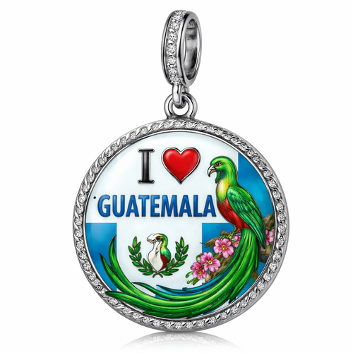 Circle charm con enamel I love Guatemala Quetzal