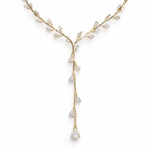 Thin Gold chain with thin wire wrapped around it like an olive branch and small pear cut diamond stones placed throughou...
