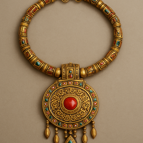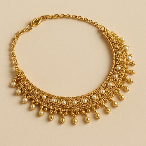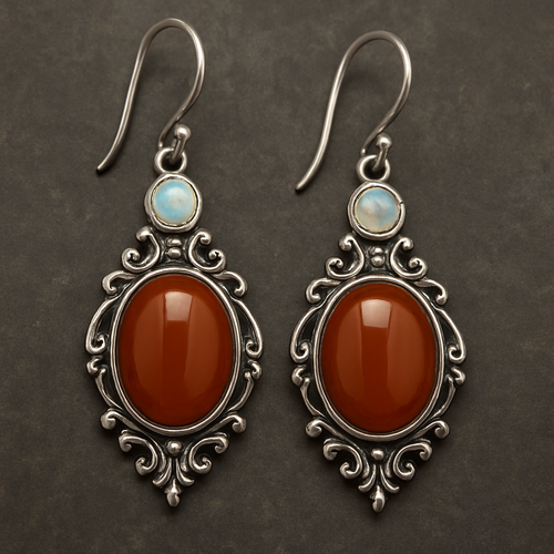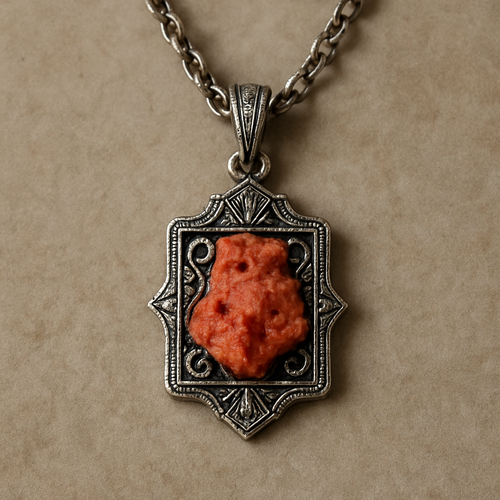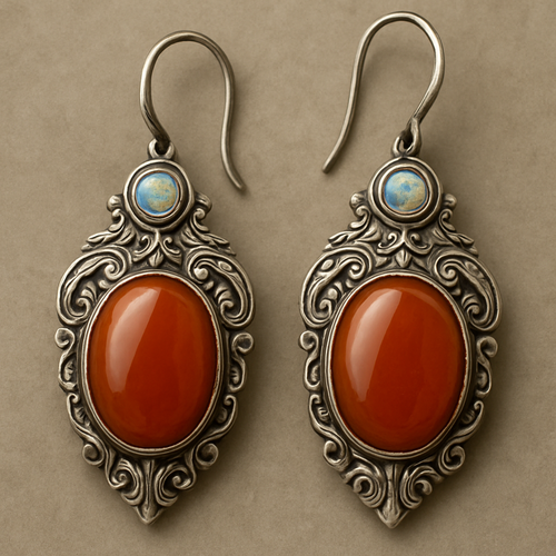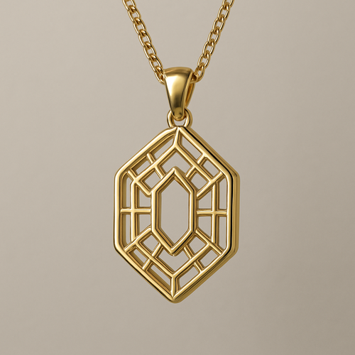 Bir mücevher tasarımı üret. amorf deniz kabuğu formunda dışa kıvrılan bir yüzeyin üzerinde damla şeklinde bir şekil ola...