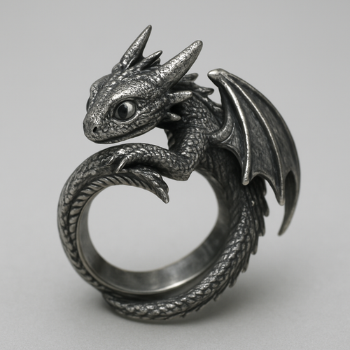 erstelle einen Ring inspiriert von Ohnezahn aus drachen zähmen leicht gemacht. der ring soll silber sein und so aussehen...