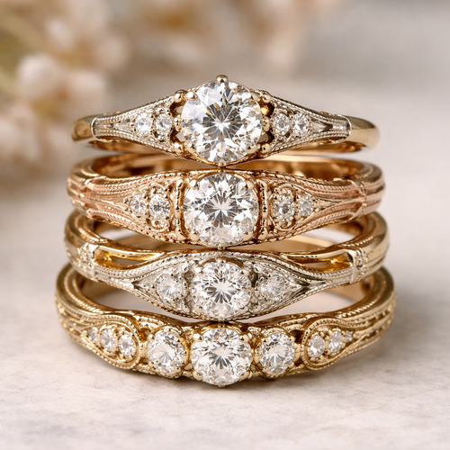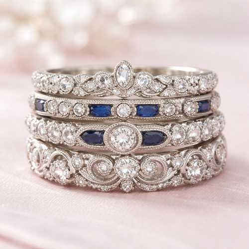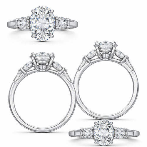 A women's ring made of white gold with diamond stones. Here are both prompts—one true CAD / engineering-accurate, and on...