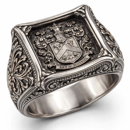 A victorian men's ring made of silver. chevalière familiale pour homme carré avec les coins concave le plateau doit être...