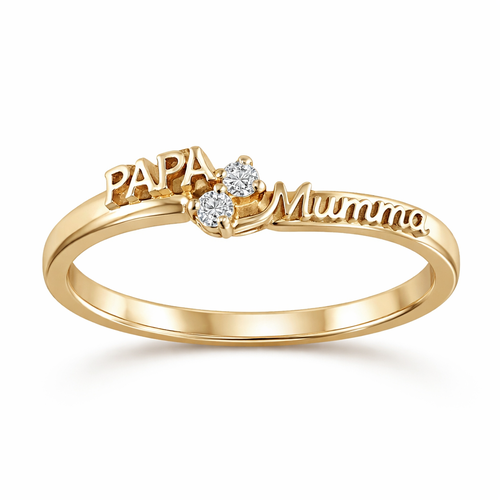 A women's ring. Gold Ring Stylish and Simple with 2 mini Diamonds Name PAPA Mumma