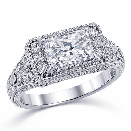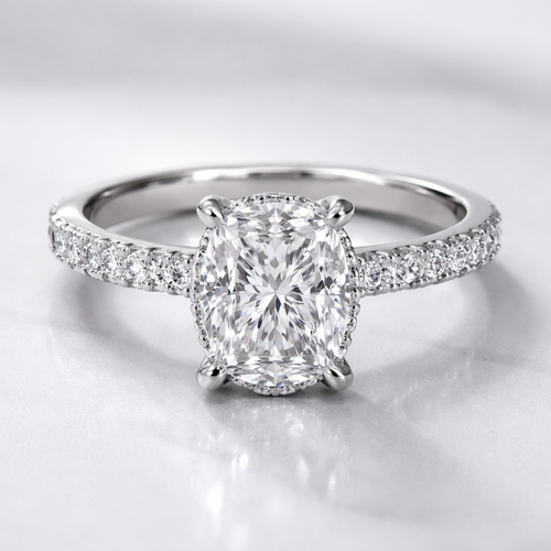 A women's ring with diamond stones. change center diamond oval to radiant and add hidden halo
