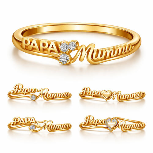 A women's ring. Gold Ring Stylish and Simple with 2 mini Diamonds Name PAPA Mumma More Designs stylish