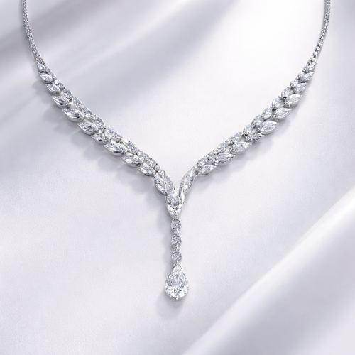 A modern women's necklace made of silver with diamond stones. same to same design make with my reference photo