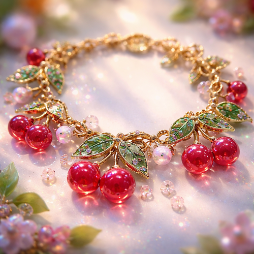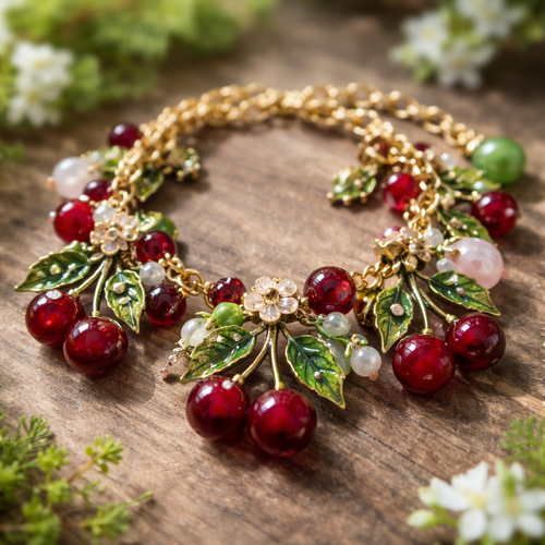 Bracelet with cherries charms and small beads